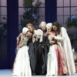 Tuttavia, c’è un tema di fondo forte: la perdita dell’innocenza: l’amore viene cacciato dal Paradiso proprio in quanto diventa intrigo sessuale ed ai sentimenti ed ai sensi non si comanda. L’opera è ambientata in ricco ‘giardino d’inverno’ settecentesco, pieni di piante (anche palme) e fiori. Dopo le visioni cupe degli Hermann e di Guth, ‘Così’ (che inaugurò il Festival nel lontano 1922- con Richard Strauss – sul podio) torna allegro, anzi gioioso pur se nasconde un velo di melanconia che si mostra soprattutto nel finale.