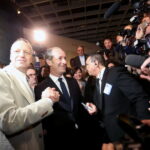 Entrambi non parlano di elezioni, è un patto tra gentiluomini che si sono promessi di rispettare, “perché qui si discute solo di vino per rispetto ai tanti produttori presenti e agli organizzatori” dirà poi Tosi dal palco. Ma ai fotografi interessa soltanto una cosa, la fatidica stretta di mano: Tosi e Zaia non si tirano indietro. Roberto Maroni, governatore lombardo, li osserva da vicino: “Luca e Flavio sono due amici e quindi non cambia niente per me” dice ai cronisti, testimoniando che la stretta di mano c’è stata e “anch’io ho stretto la mano a tutti e due”.