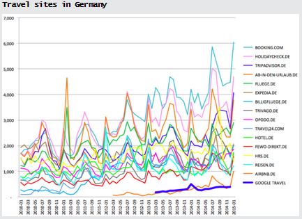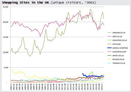 Walker non si ferma qui e affronta direttamente anche il tema dello shopping online: «Anche in questo caso la concorrenza è molto forte, nonostante le accuse rivolte (da Bruxelles ndr). Basti pensare ad Amazon e eBay che non sono stati danneggiati in nessun modo dal servizio commerciale di Google». Per dimostrarlo, il consigliere generale di Google riporta i grafici di comScore con i dati riguardanti i principali siti di shopping online e viaggi in Francia, Germania e Gran Bretagna.