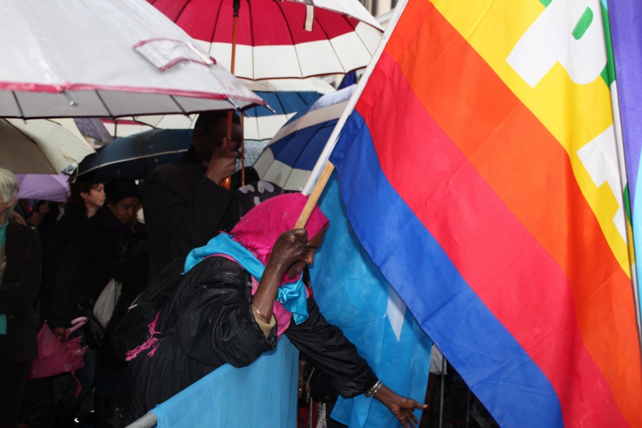 Si alternano gli interventi sul palco mentre tutt’intorno vengono innalzati cartelli e striscioni. Gli slogan più quotati assomigliano ad hastag di matrice twitteriana: “Not in my name”, “Islam = Pace”, “No al terrorismo, sì alle moschee”, ma ogni tanto compaiono anche versetti del Corano che incitano alla pace. Qualcuno ha anche la bandiera della Siria, tanto per ricordare all’Europa scossa dagli attentati di Parigi che laggiù si sta compiendo una mattanza da anni, e che moltissimi musulmani stanno perdendo la vita sul campo di battaglia. All’improvviso partono dei cori che inneggiano alla pace e all’amore. Un ragazzo egiziano si avvicina con decisione: “Ci considerano degli assassini e dei fanatici – si sfoga – io vivo qui da dodici anni, ma non ho mai fatto niente di male, tanto meno un attentato”. Intorno a lui si forma subito un crocchio di gente. Alcuni manifestanti hanno voglia di dire la loro. Tra il cordone umano che separa il palchetto dalla “platea” della piazza si intravedono dei bambini che si stringono intorno ai genitori.