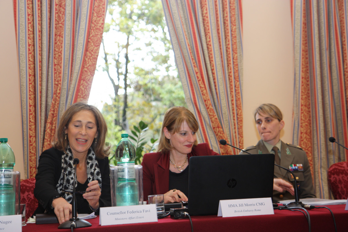 In Italia il 5% delle Forze armate è costituito dalle donne. Una percentuale ancora bassa se si guarda all’esempio inglese, ma bisogna tenere conto che l’ingresso è avvenuto a partire dal 2000, quindi relativamente tardi rispetto ad altri Paesi. A spiegare cosa significa far parte delle Forze armate italiane, nel corso dell’incontro a Villa Wolkonsky è stato il primo maggiore donna dell’Esercito, Monica Segat. “Entrare nelle Forze armate – ha detto l’ufficiale, nata tra l’altro nella storica città della prima guerra mondiale, Vittorio Veneto – è stata la scelta più naturale”. “Il combattimento è indipendente dal genere maschile o femminile”, ha spiegato poi ricordando la sua esperienza sul campo. Proprio per questo “le organizzazioni militari devono garantire uguali opportunità a tutti”, evitando di estromettere la componente femminile e anzi perseguendo “l’integrazione delle donne in ruoli close combat”.