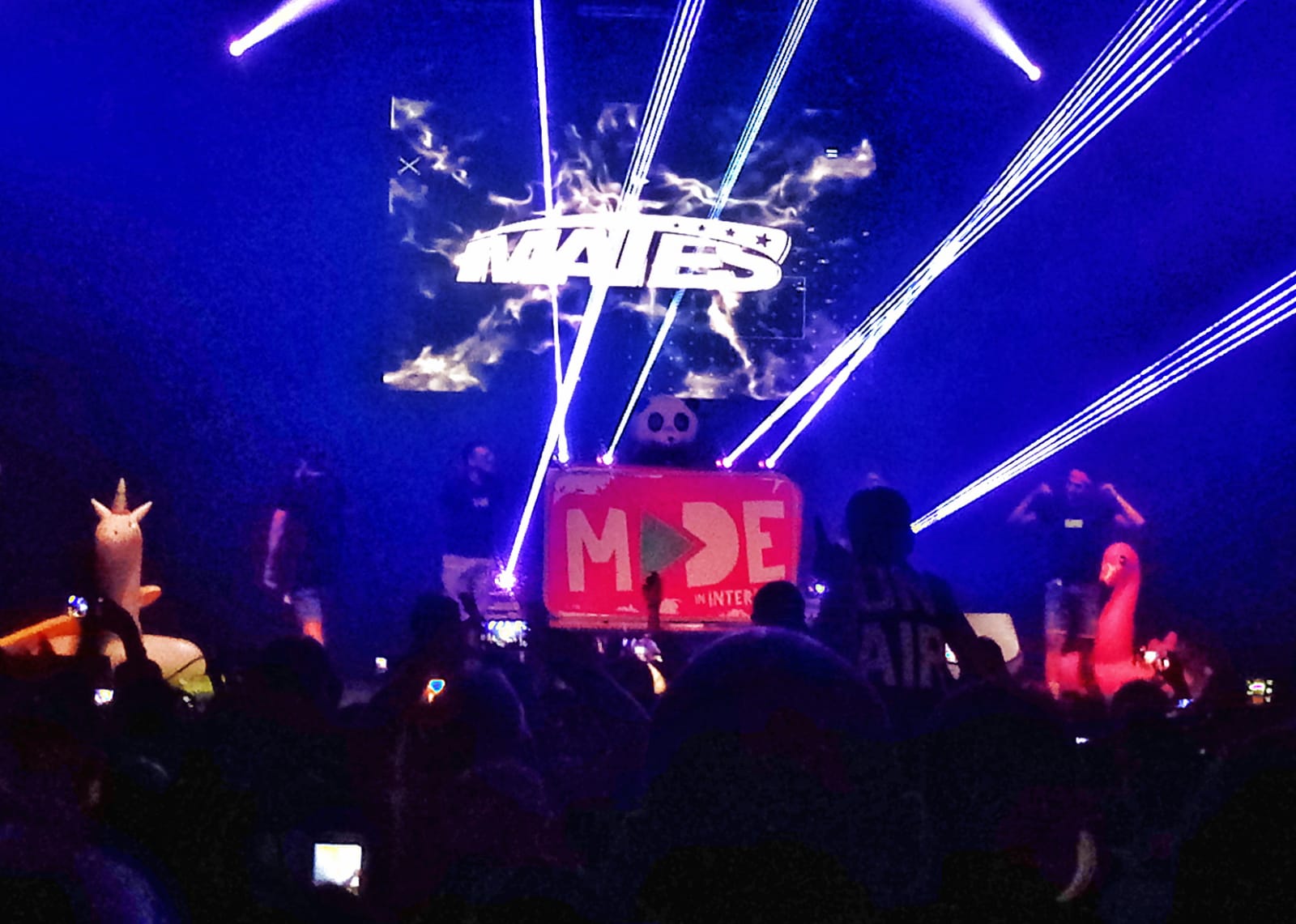 Dopo un’ora di balli scatenati con Klaus dj in consolle, ha avuto inizio lo show vero e proprio. Si sono esibiti i cinque youtuber italiani più famosi del momento: prima Favij, entrato cantando la parodia di “Occidentali’s Karma” di Francesco Gabbani, e poi i Mates, in arte Vegas, Anima, St3pNy e SurrealPower, che hanno fatto impazzire i giovanissimi con varie canzoni e momenti di spettacolo. Insieme a loro è arrivato sulla scena anche un Panda simpaticissimo, una sorta di mascotte della serata.