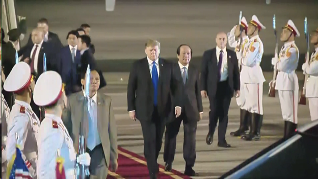 (Foto: Twitter, @MarkKnoller, l’arrivo di Trump ad Hanoi)