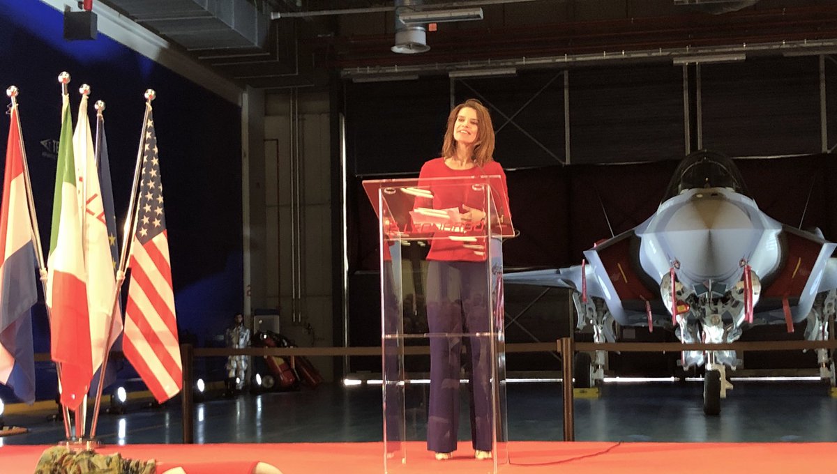 Il programma ha riunito diversi membri dell’alleanza transatlantica, in particolare nell’ambito europeo. Lavorare con questo aereo comporterà una maggiore interoperabilità e contribuirà alla forza della Nato. In tal senso, voglio per dedicare una parola speciale di ringraziamento alla leadership americana che ha contribuito a guidare questo programma altamente complesso. Il program executive officer Eric Fick, Doug Wilhelm di Lockheed Martin e Cheryl Lobo di Pratt & Whitney: voi e i vostri colleghi siete stati cruciali per far funzionare tutto questo. Grazie per la pazienza e la perseveranza.
