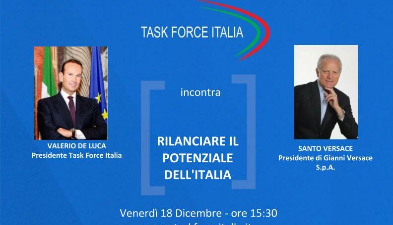 La filiera della moda rappresenta un settore strategico per il rilancio dell’Italia nel mondo e necessita di un piano articolato di policy per creare valore sostenibile nel lungo termine e innovazione nei modelli di business. Nuovo appuntamento del web talk “Rilanciare il potenziale dell’Italia” organizzato da Task Force Italia che ospiterà Santo Versace, presidente di Gianni Versace s.p.a.