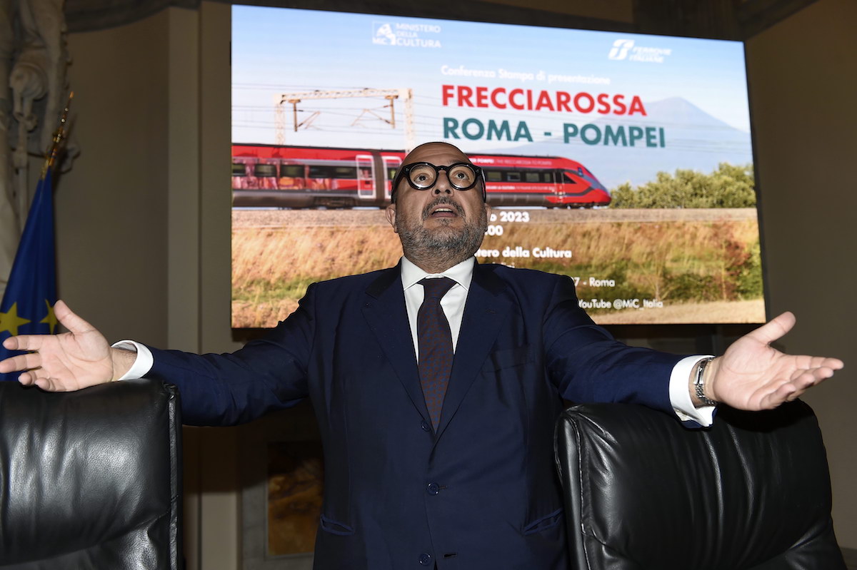 Gennaro Sangiuliano alla presentazione della linea diretta Trenitalia Roma-Pompei (12/07/2023, Roma, Imagoeconomica)