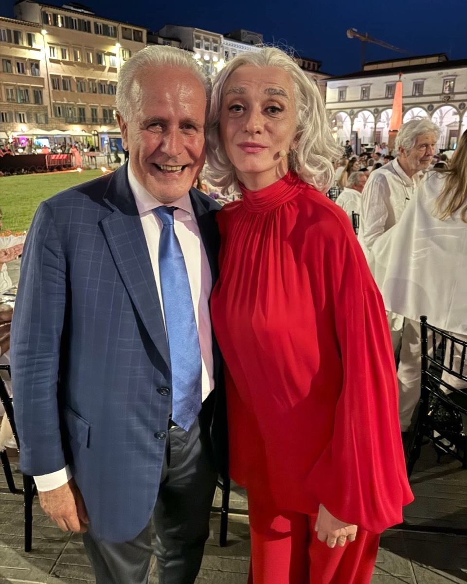 Eugenio Giani e Drusilla Foer alla serata organizzata dalla fondazione ANT Italia Onlus che fornisce supporto ai bambini malati di tumore (10/07/2024, Firenze, Instagram/Eugenio Giani)