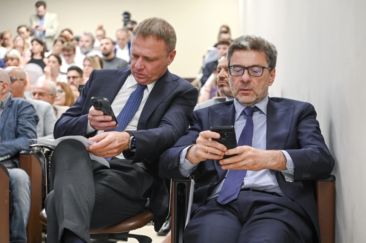 Francesco Lollobrigida e Giancarlo Giorgetti all’assemblea generale Unione italiana vini (11/07/2024, Roma, Imagoeconomica)