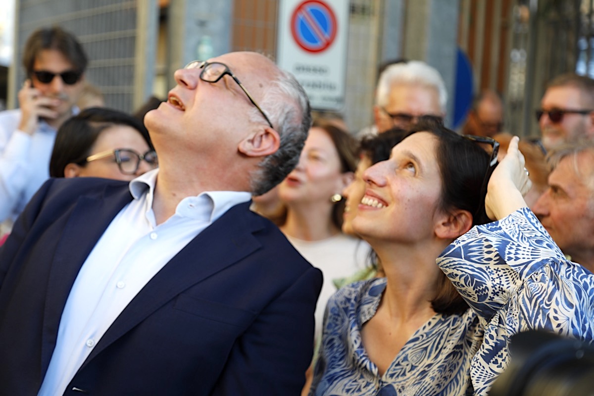 Roberto Gualtieri e Elly Schlein all’inaugurazione del murales dedicato a Michela Murgia (11/07/2024, Roma, Imagoeconomica)