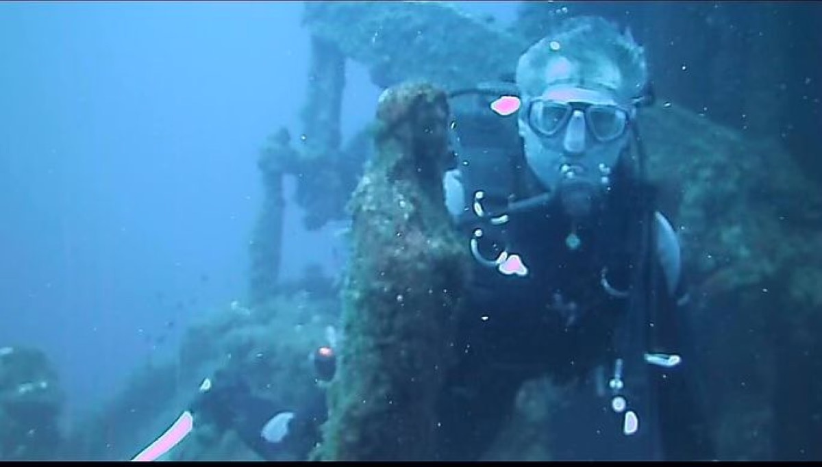 Immersione di Gianni Alemanno nella riserva di Marina di Capo Rizzuto (KR) per dire no al progetto del nuovo Parco eolico off-shore Krimisa (06/07/2024, Marina di Capo Rizzuto, Instagram/Gianni Alemanno)