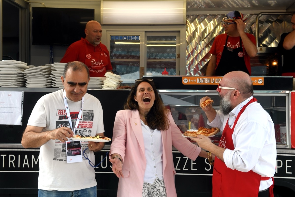 Elio, Alessandra Locatelli, Nico Acampora alla presentazione del progetto PizzaAutTruck (09/07/2024, Milano, Imagoeconomica)