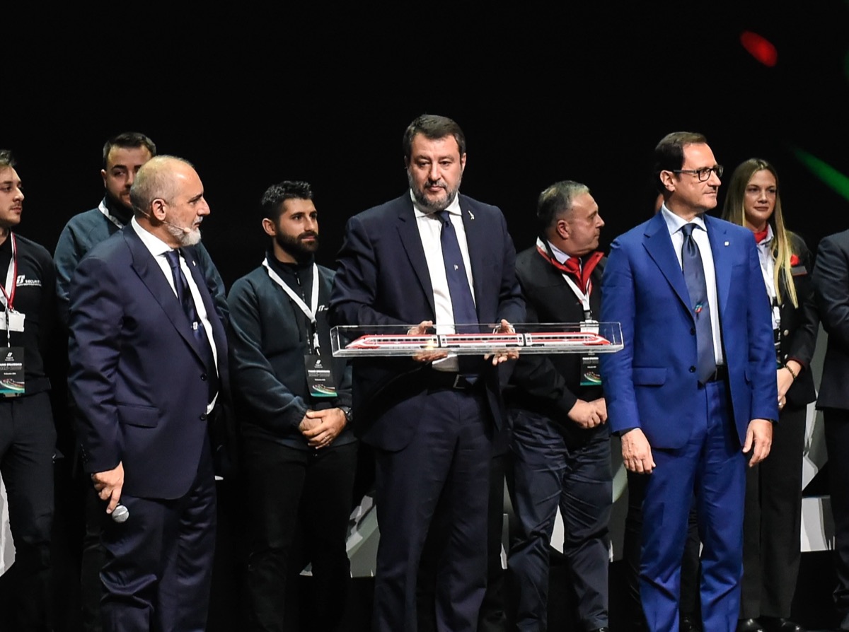 Antonio Donnarumma, Matteo Salvini e Tommaso Tanzilli alla presentazione del piano strategico FD 2025-2029 (12/12/2024, Roma, Imagoeconomica)