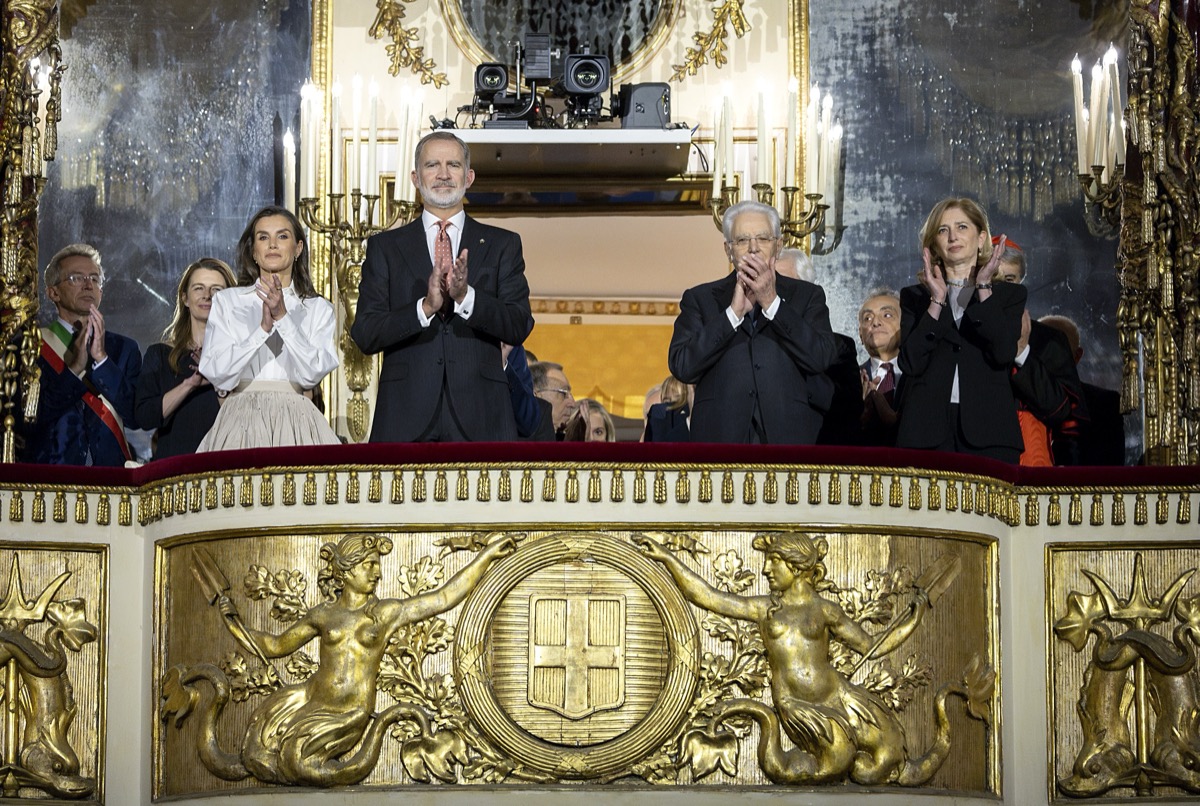 Letizia di Spagna, Re Felipe, Sergi Mattarella e Laura Mattarella al Teatro San Carlo (12/12/2024, Napoli, Imagoeconomica)
