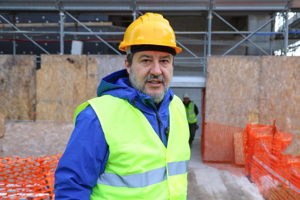 Matteo Salvini durante il sopralluogo tecnico presso il cantiere Pnrr relativo agli interventi di riqualificazione delle case popolari del comparto R5 a Tor Bella Monaca (20/01/2026, Roma, Imagoeconomica)