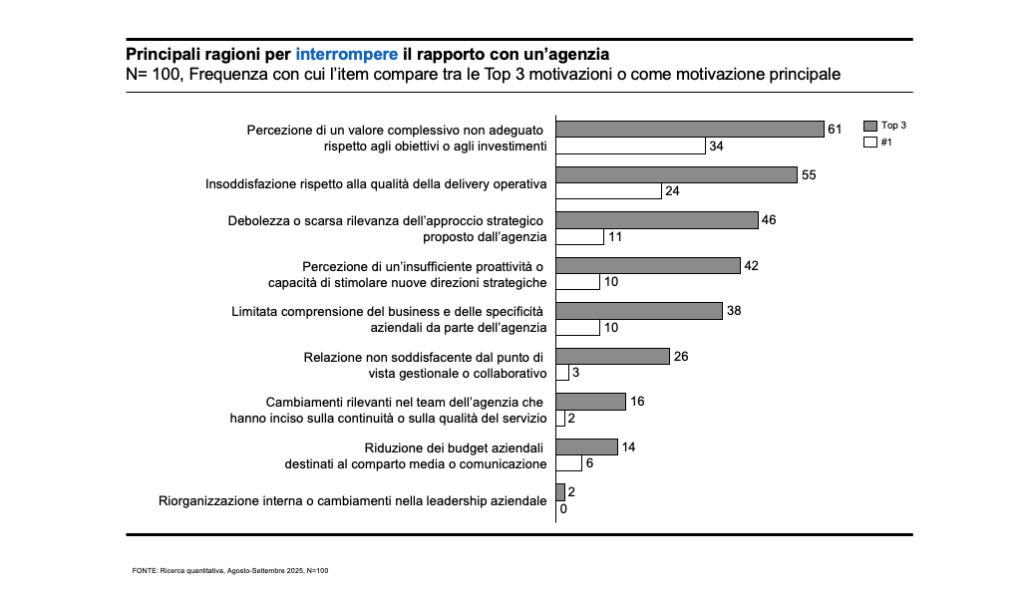 Figura 3. Principali ragioni per interrompere il rapporto con un’agenzia