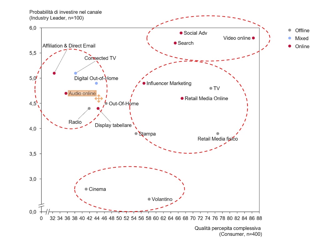 L’elemento interessante emerge incrociando le due prospettive: ciò che le aziende intendono finanziare e ciò che i consumatori percepiscono come qualitativamente rilevante non sempre coincidono. In alcuni casi sì (social, search, video online), in altri meno. Questo disallineamento rappresenta uno spazio strategico rilevante per chi saprà presidiare in modo integrato media, contenuti e misurazione.