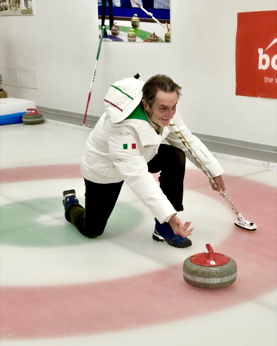 Attilio Fontana gioca a curling nell’ultima giornata di gare olimpiche di Milano-Cortina (21/02/2026, Bormio, Instagram)