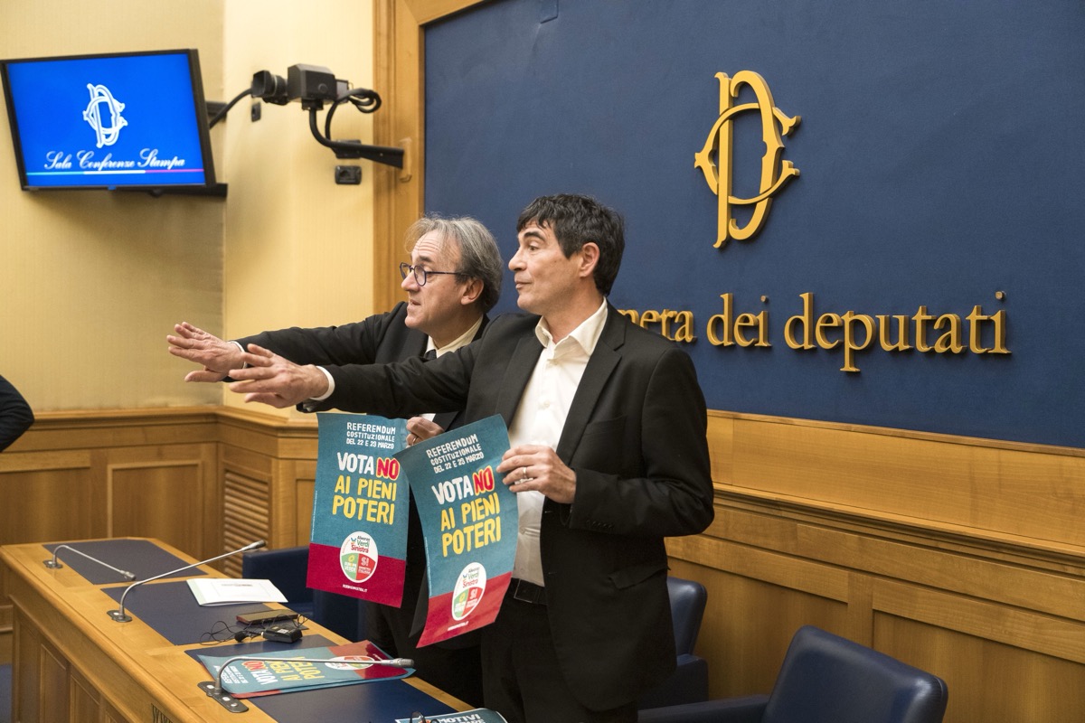 Angelo Bonelli e Nicola Fratoianni alla conferenza stampa “No ai Pieni Poteri – 8 motivi per votare NO al referendum costituzionale” (26/02/2026, Roma, Imagoeconomica)