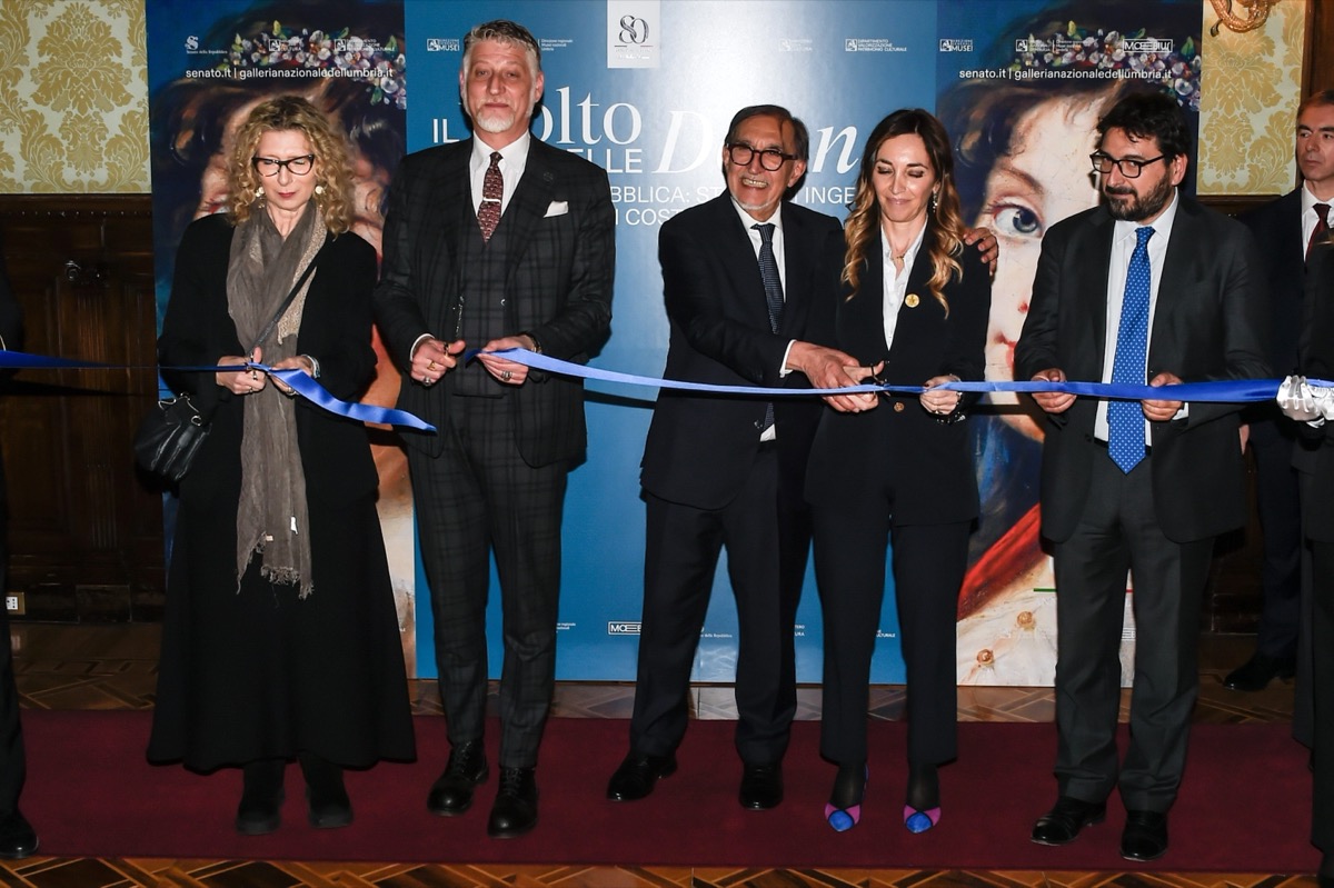 Anna Rossomando, Alessandro Giuli, Ignazio La Russa, Mariolina Castellone, Costantino D’Orazio all’apertura della mostra “Il volto delle donne” (04/03/2026, Roma, Imagoeconomica)