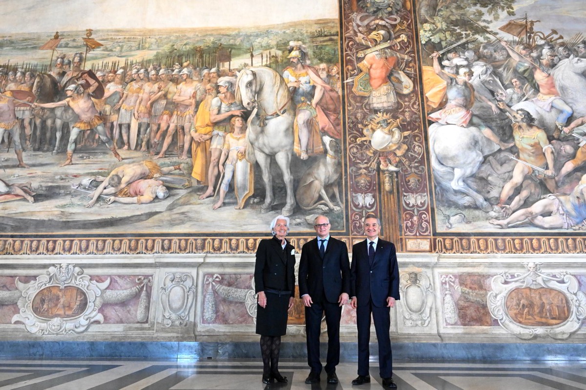 Christine Lagarde in visita a Roma con Roberto Gualtieri e Fabio Panetta (05/03/2026, Roma, Imagoeconomica)