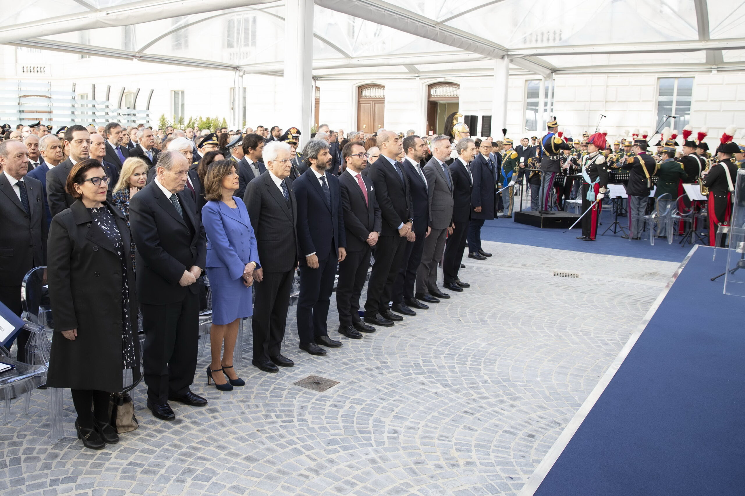 All’ingresso del palazzo c’è una “Parete della memoria” per ricordare i quattro agenti caduti in missione che Conte ha citato: Vincenzo Li Causi, Nicola Calipari, Lorenzo D’Auria e Piero Antonio Colazzo. Una sede imponente nel cuore di Roma, costruita subito dopo la Prima guerra mondiale, che da oggi ospiterà un migliaio di operatori dei Servizi, una sede definita da Conte “la raffigurazione plastica della legge di riforma” che punta all’unitarietà del sistema di sicurezza nazionale.
