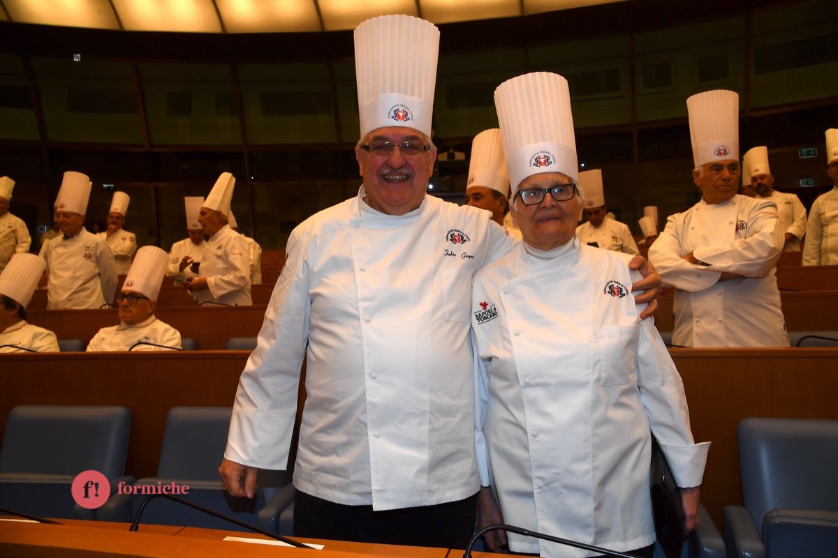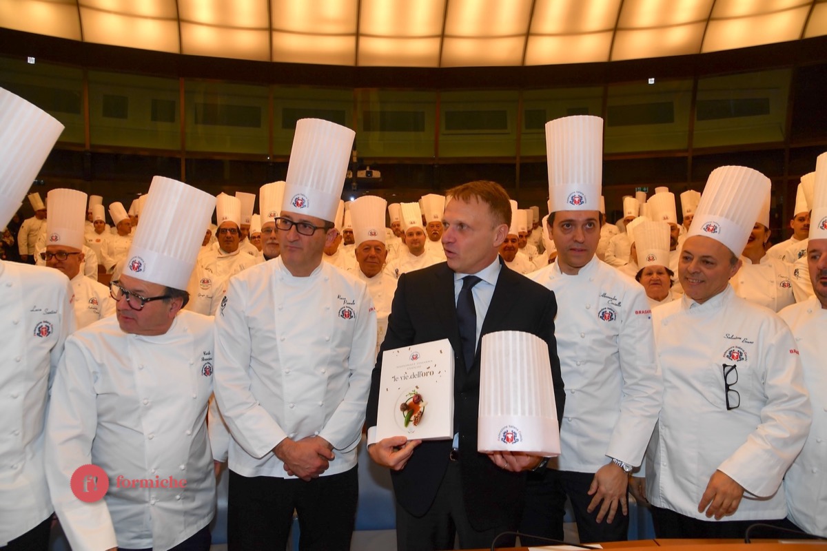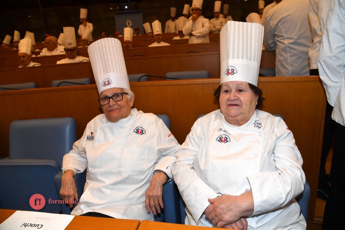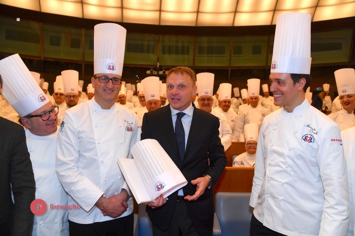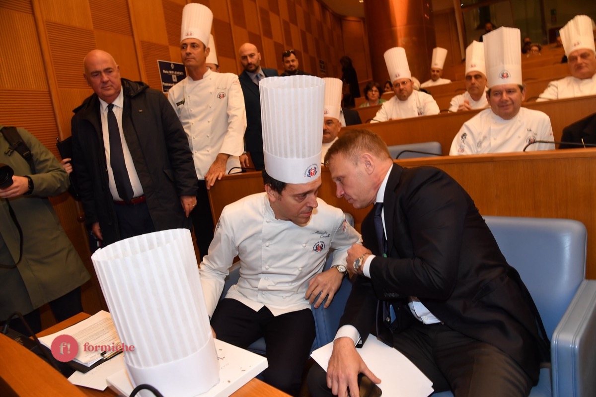 Centinaia di berretti bianchi, provenienti da tutte le regioni d’Italia e da oltre 10 Paesi stranieri, si sono riunite ieri alla Camera dei Deputati per la 2° edizione dell’Albo d’Oro Federcuochi. Il riconoscimento è stato consegnato ad oltre 100 professionisti di varie categorie (Solidarietà e Volontariato, Ambasciatori della cucina italiana nel mondo. L’appuntamento si è aperto con i saluti istituzionali del Questore della Camera Paolo Trancassini, che ha ricordato l’importanza del ruolo dei cuochi per l’Italia, veri ambasciatori del Made in Italy, capaci di raccontare le eccellenze dei nostri territori e le tradizioni più antiche. Il presidente FIC Rocco Pozzulo ha sottolineato l’importanza di “suscitare l’interesse dei giovani verso la ristorazione, settore che richiede impegno e sacrificio ma che può offrire grandi soddisfazioni personali e professionali”.