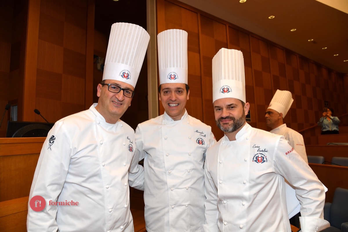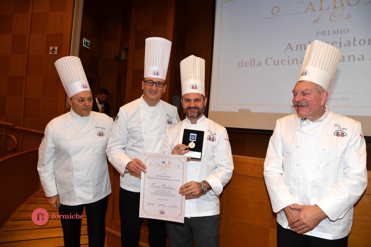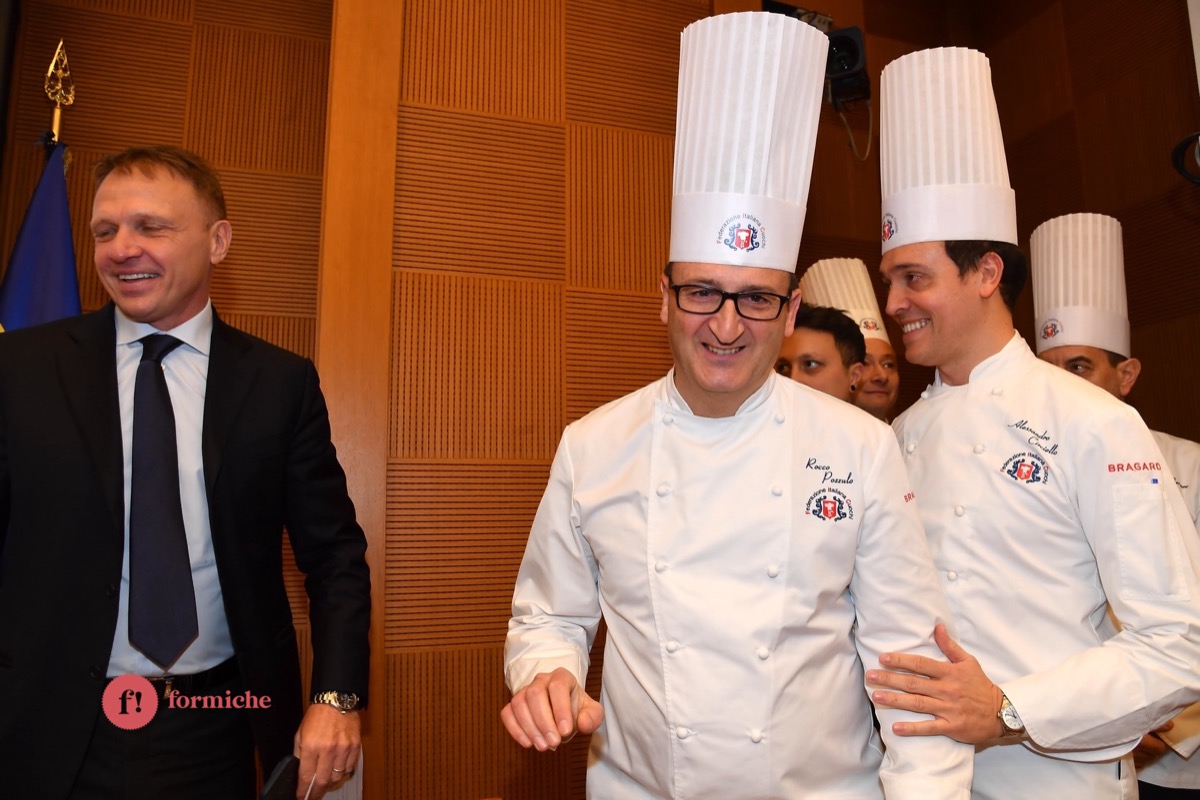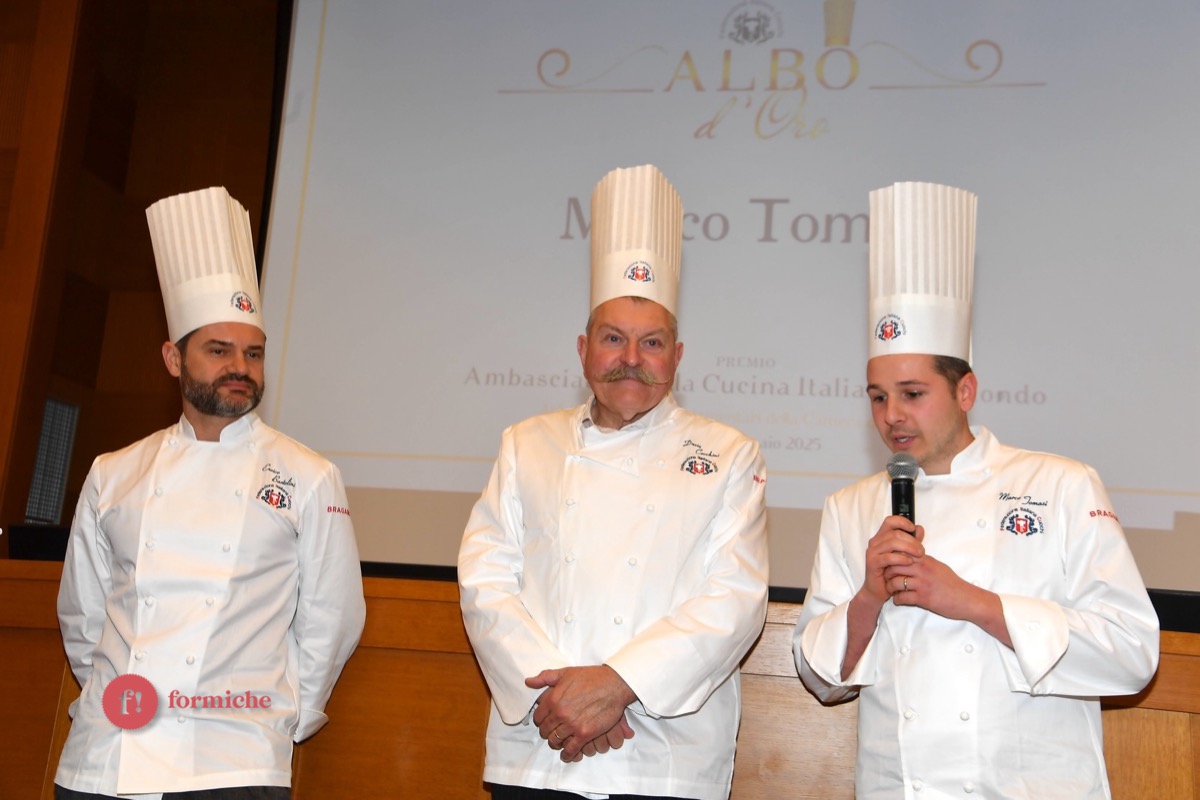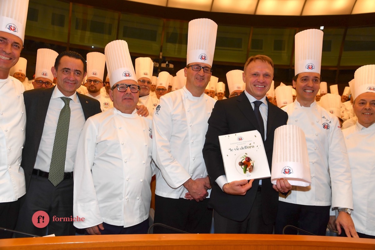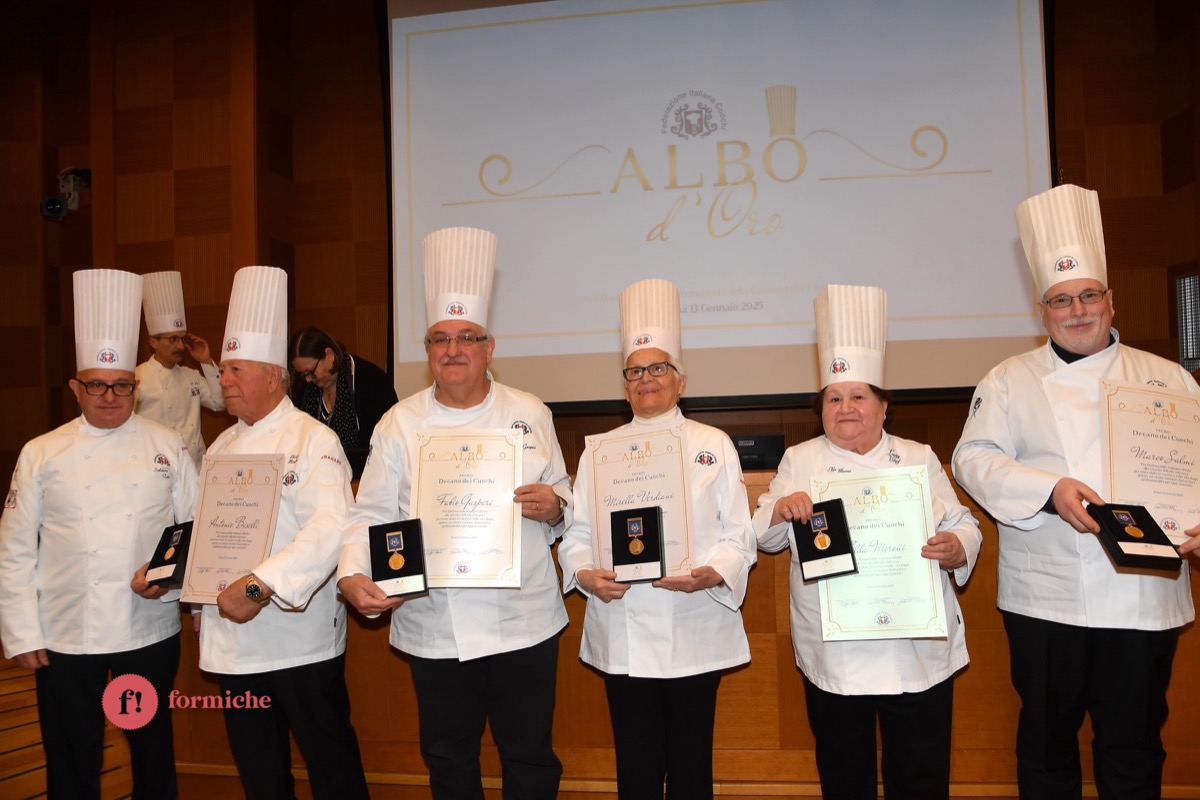 Centinaia di berretti bianchi, provenienti da tutte le regioni d’Italia e da oltre 10 Paesi stranieri, si sono riunite ieri alla Camera dei Deputati per la 2° edizione dell’Albo d’Oro Federcuochi. Il riconoscimento è stato consegnato ad oltre 100 professionisti di varie categorie (Solidarietà e Volontariato, Ambasciatori della cucina italiana nel mondo. L’appuntamento si è aperto con i saluti istituzionali del Questore della Camera Paolo Trancassini, che ha ricordato l’importanza del ruolo dei cuochi per l’Italia, veri ambasciatori del Made in Italy, capaci di raccontare le eccellenze dei nostri territori e le tradizioni più antiche. Il presidente FIC Rocco Pozzulo ha sottolineato l’importanza di “suscitare l’interesse dei giovani verso la ristorazione, settore che richiede impegno e sacrificio ma che può offrire grandi soddisfazioni personali e professionali”.