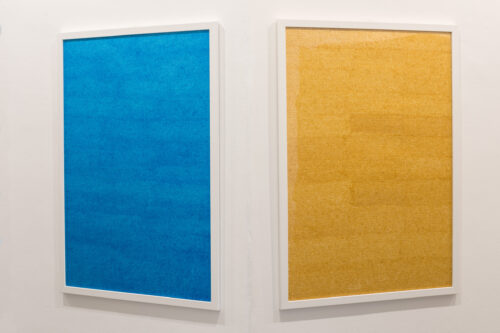 Il terzo appuntamento di INTERZONE, concepito e realizzato da Michele Giangrande, si intitola “Cosmic Milk”, la tonalità cromatica che, secondo recenti studi, rappresenta il vero colore dell’universo. Le opere esposte sono dunque sequenze che indagano lo spazio/tempo da un punto di vista, di volta in volta, scientifico e spirituale. Un viaggio che parte dalla scrittura con la “Writing Series”, comuni fogli A4 ricoperti di strati e strati di scrittura con penne a biro di diversi colori.