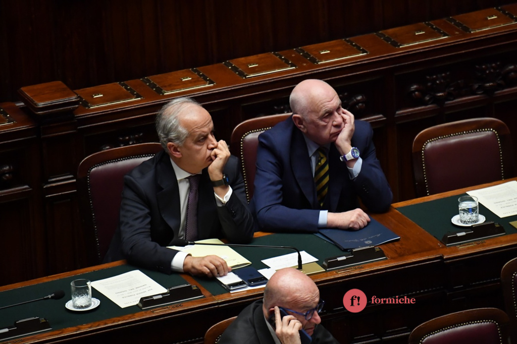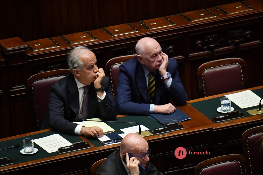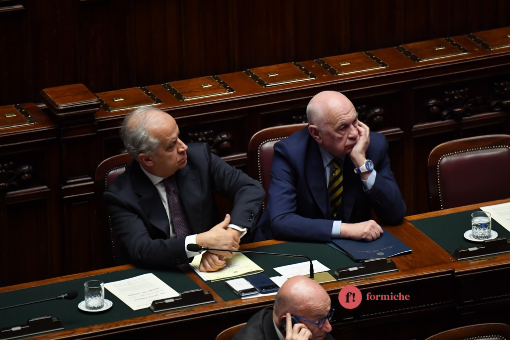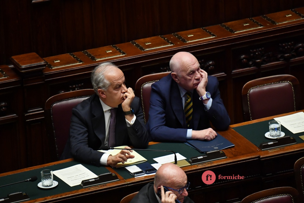 Un question time diverso dagli altri quello di Carlo Nordio, ministro della Giustizia, alla Camera. “Non è previsto in un nessun ordinamento che il ministro della Giustizia si dimetta a seguito di un referendum a esito negativo”. Queste le prime dichiarazioni di Nordio, interpellato in merito alle recenti dimissioni del sottosegretario della Giustizia, Andrea Delmastro, e della capo di gabinetto Giusi Bartolozzi. In generale, Nordio, è stato sollecitato sulle conseguenze della vittoria del No alla consultazione del 22 e 23 marzo. Ecco le foto di Umberto Pizzi.