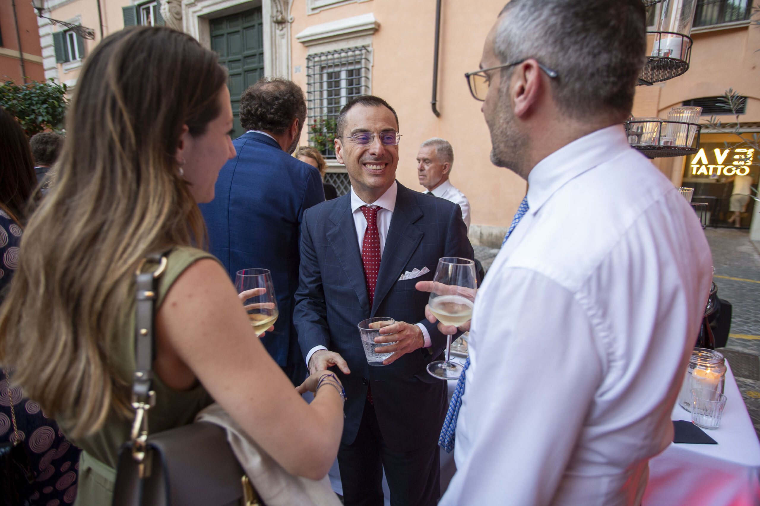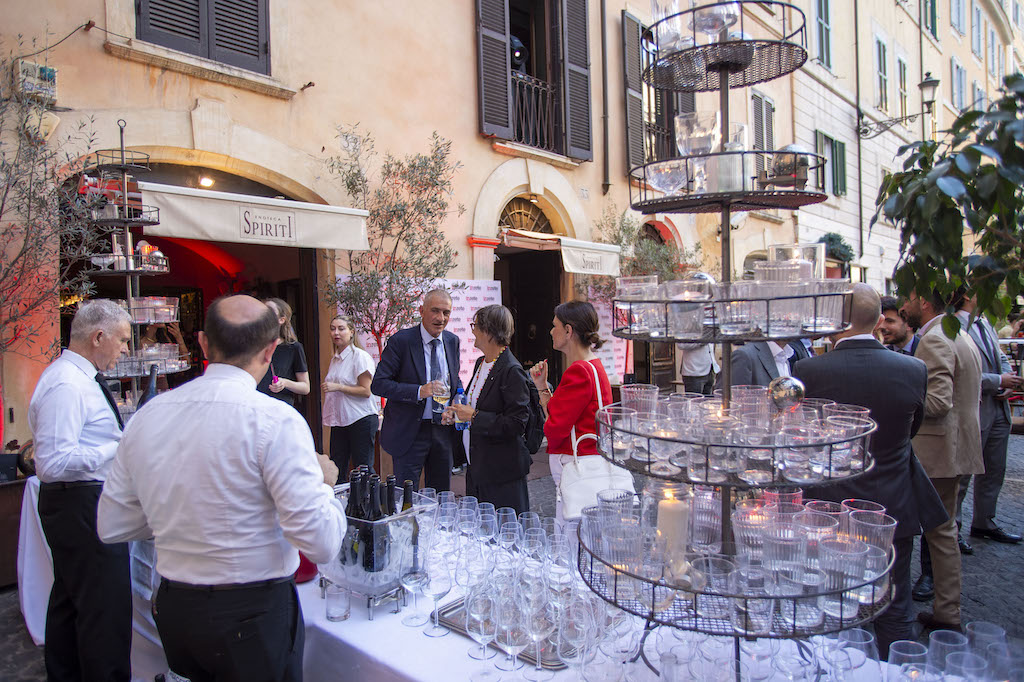L’Enoteca Spiriti ha ampliato per una sera il suo dehors antistante le colonne del Tempio di Adriano per ospitare membri del governo, parlamentari, presidenti di Authority e rappresentanti di enti pubblici, giornalisti, top manager e stakeholder del mondo istituzionale ed economico che hanno brindato fino a tarda sera, in occasione di un evento estivo organizzato da Inrete, società fondata nel 2011 da Simone Dattoli.