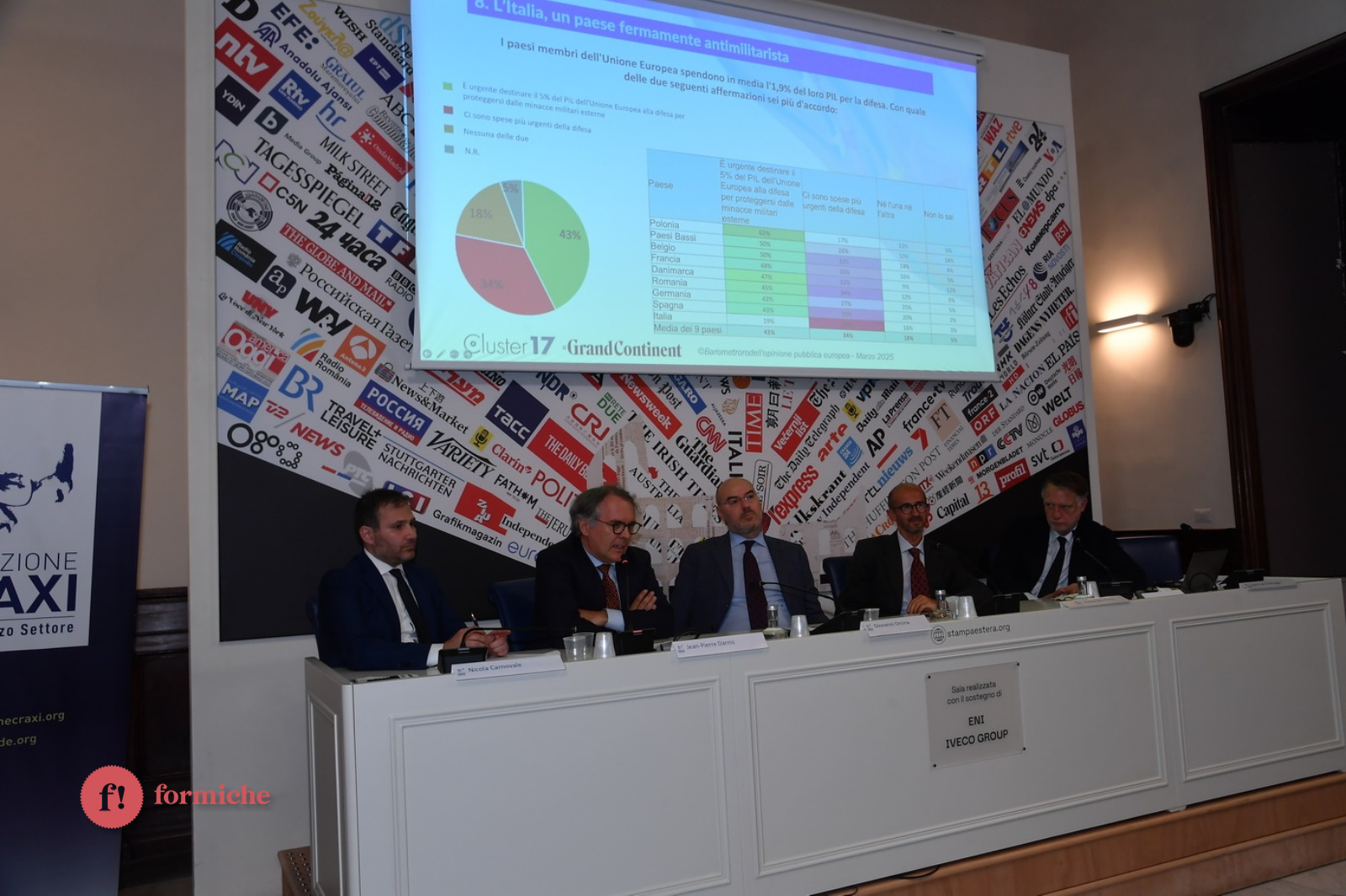 Si è tenuto presso la Sala della Stampa Estera a Palazzo Grazioli l’evento “L’Italia, l’Europa e la sicurezza nel XXI secolo”, organizzato dalla Fondazione Craxi e in cui è stato presentato lo studio “La società italiana e la difesa europea”, condotto da Cluster17 e pubblicato da Le Grand Continent.