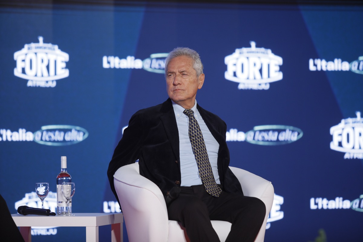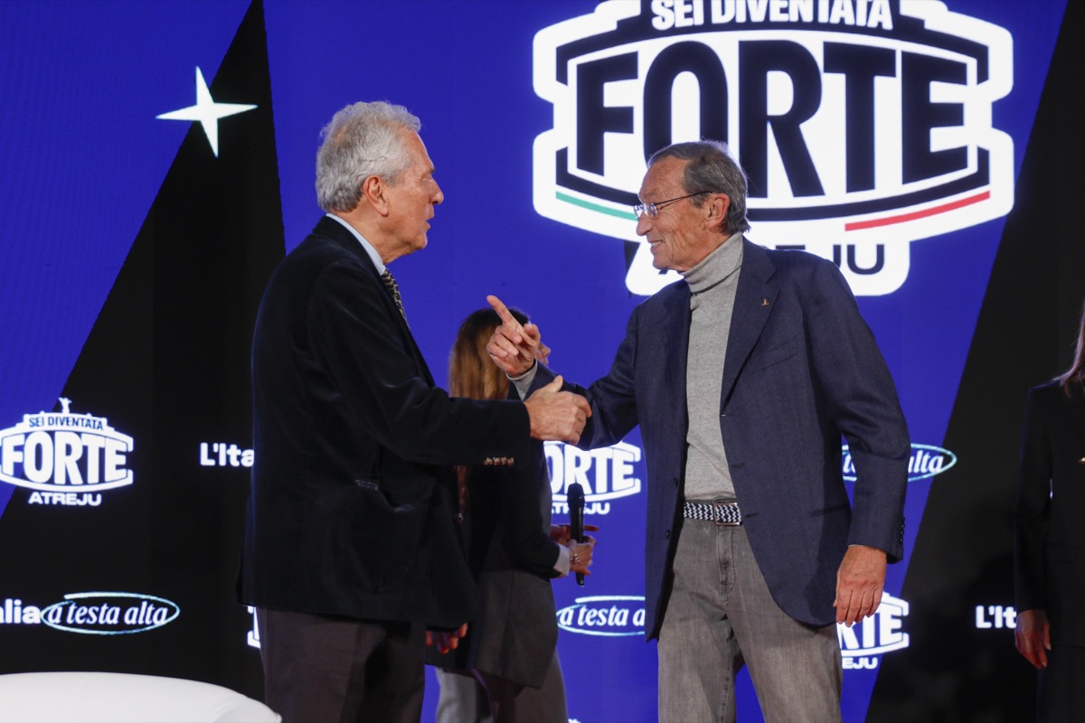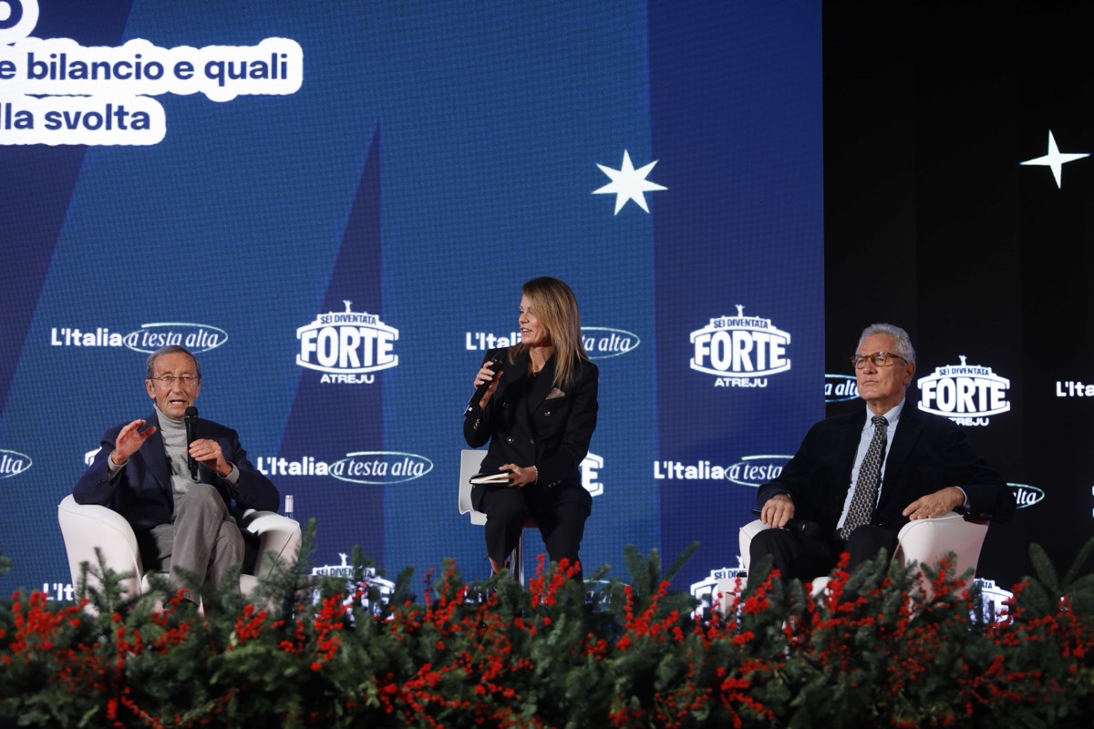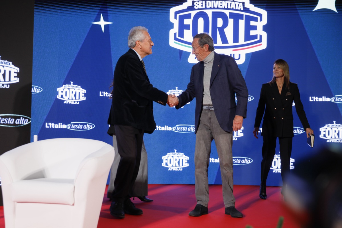 Gianfranco Fini e Francesco Rutelli sul palco di Atreju 2025. Tutte le foto da Castel Sant’Angelo