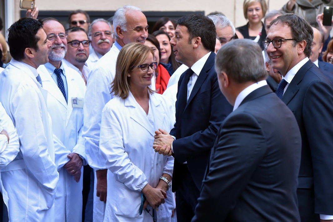 Taglio del nastro per il nuovo Pronto Soccorso dell’Ospedale Santo Spirito a Roma, a pochi passi dal Vaticano. Una breve cerimonia preceduta dalla visita ai locali della nuova struttura del presidente del Consiglio, Matteo Renzi, insieme al ministro della Salute, Beatrice Lorenzin, il presidente del pontificio Consiglio della Nuova Evangelizzazione dei Popoli, monsignor Rino Fisichella, insieme al presidente della regione Lazio, Nicola Zingaretti, presenti anche il prefetto di Roma, Franco Gabrielli, e il Commissario straordinario della Capitale, Francesco Paolo Tronca.