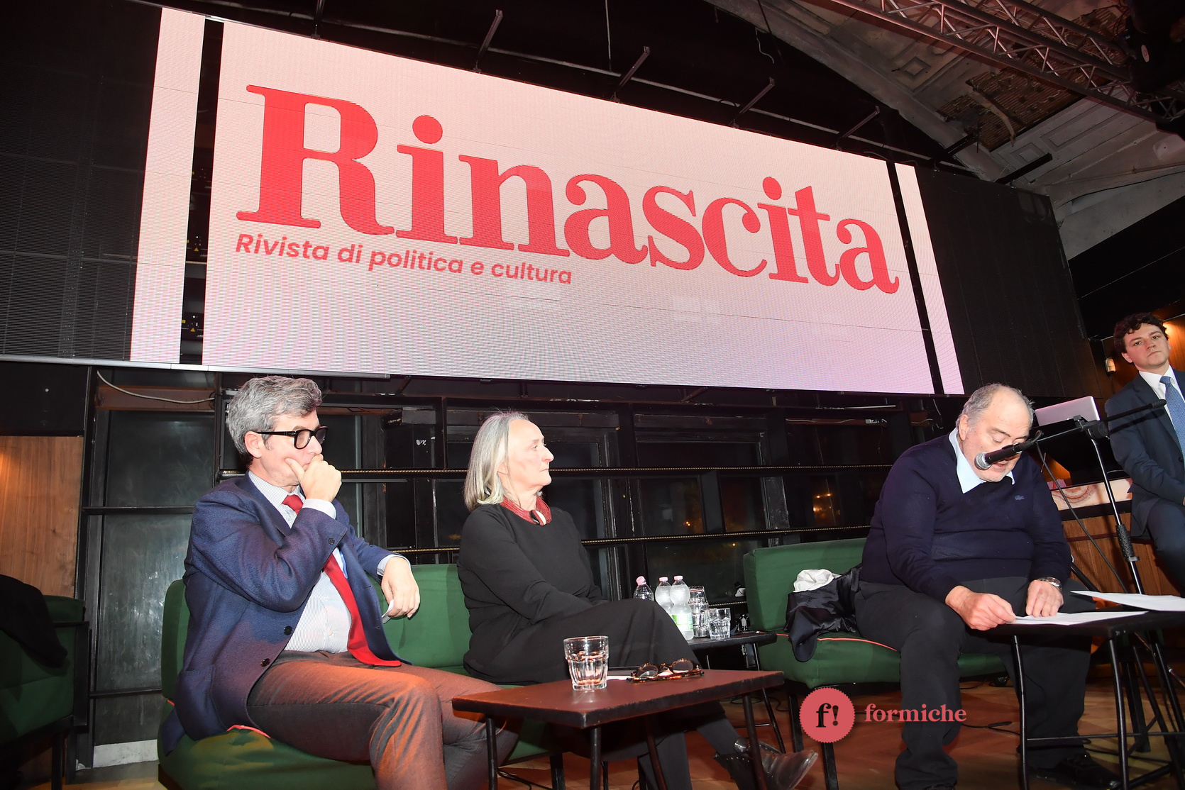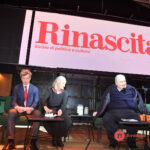 Sul palco c’erano Goffredo Bettini, Andrea Orlando e Sabrina Alfonsi, all’aperitivo per la riapertura di Rinascita, storica rivista del Partito comunista riportato in vita lo scorso novembre proprio da Bettini.