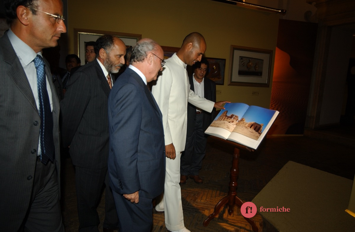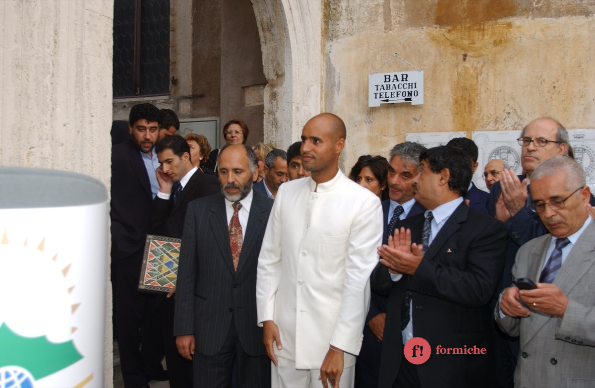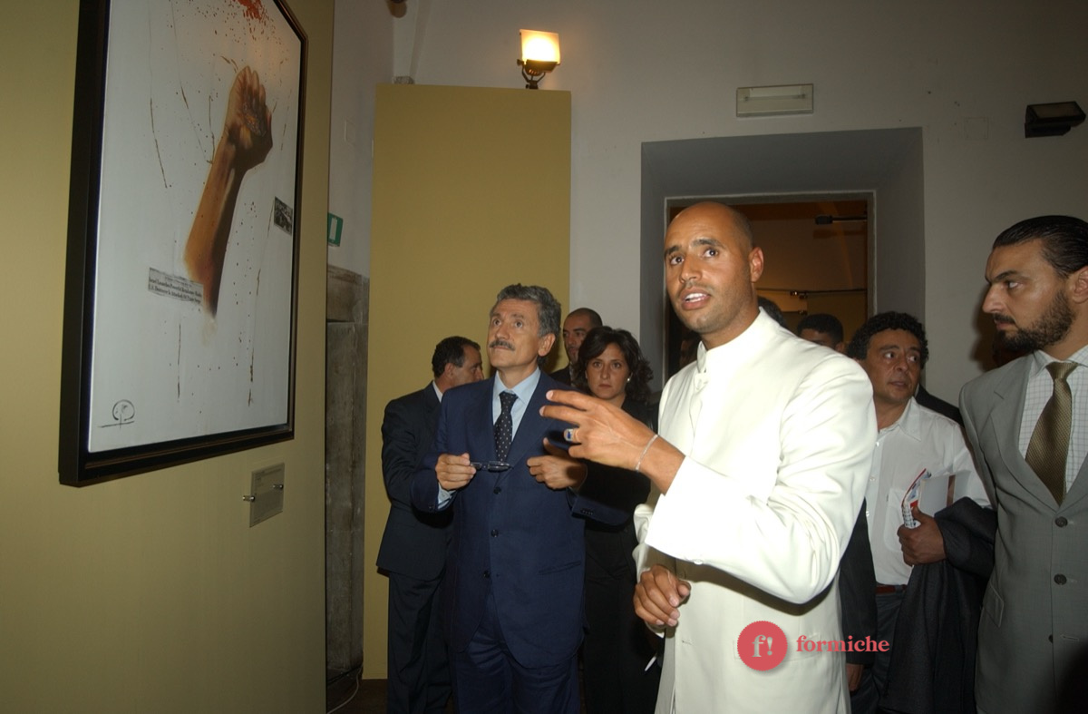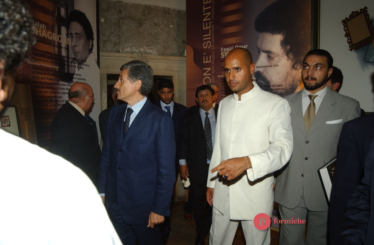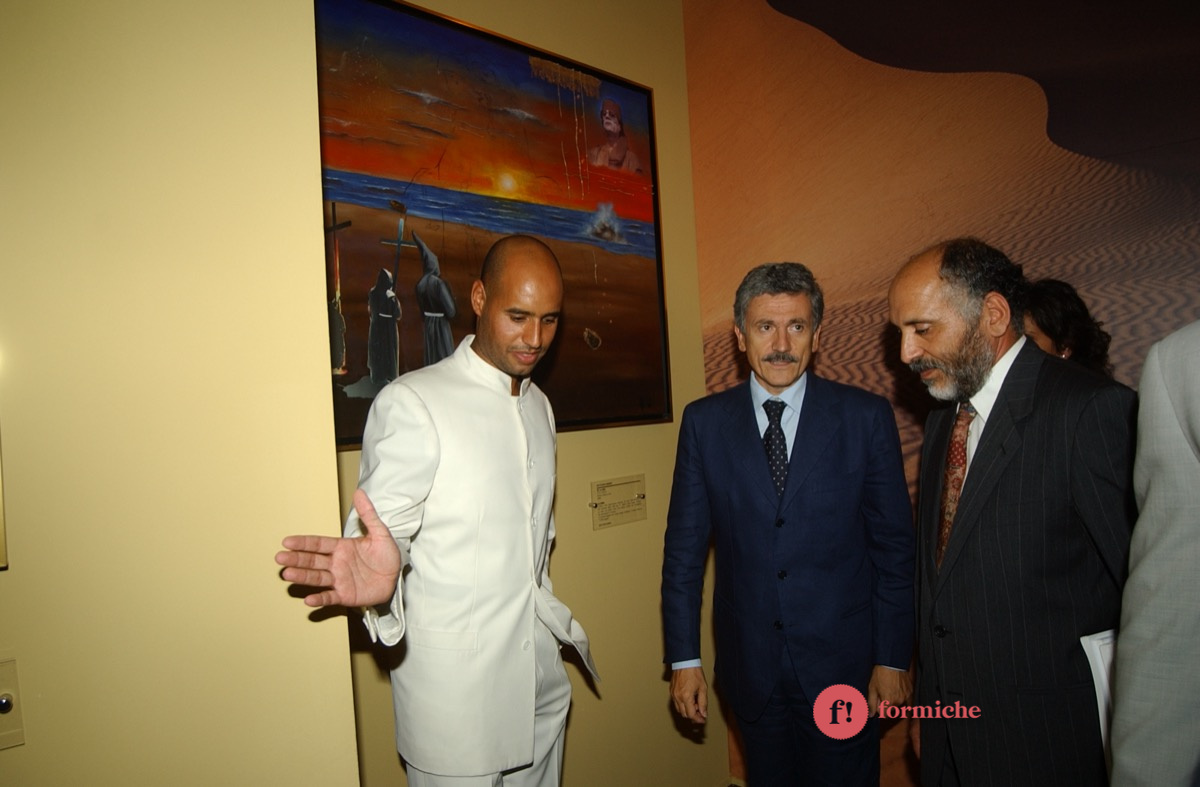 Nel lontano 2002, Saif-El-Islam, figlio dell’ex leader libico Muammar Gheddafi e ucciso ieri nel giardino della sua casa in Libia, era presente all’inaugurazione romana della mostra “Il deserto non è silente” promossa dall’associazione “Gaddafi International Foundation for Charity Associations”. Presenti allora Massimo D’Alema, Giuliano Urbani, Lamberto Dini.