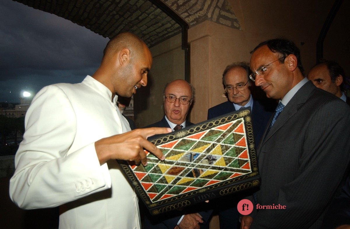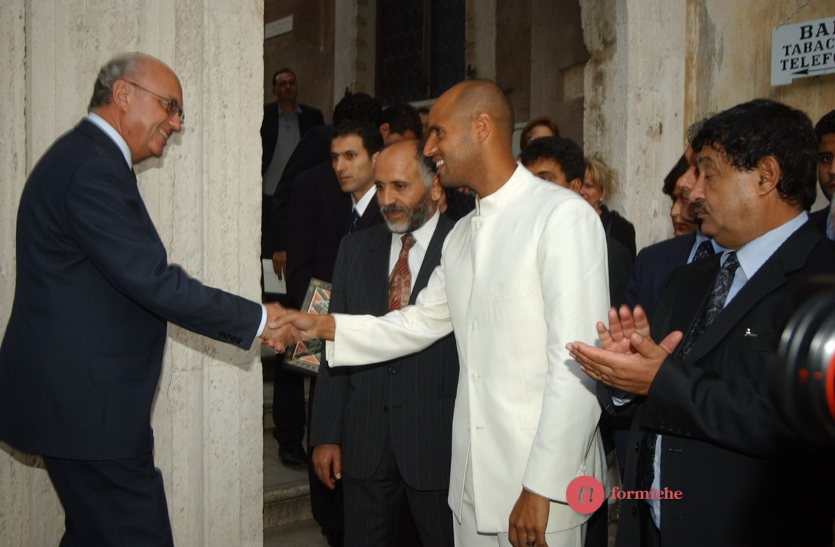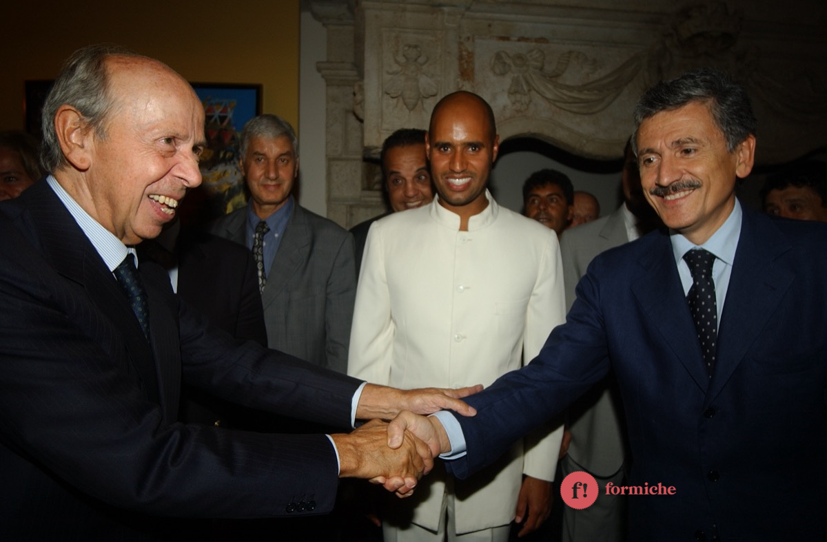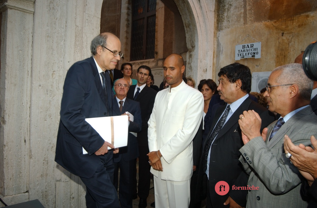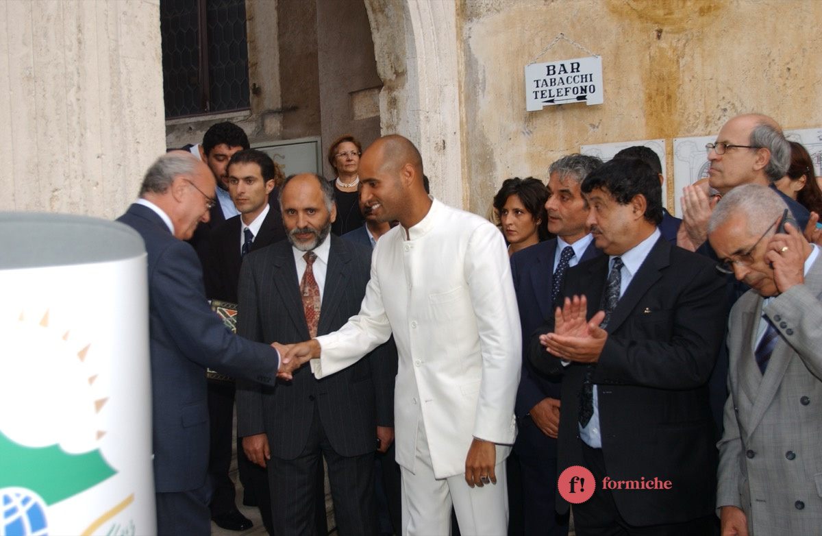 Nel lontano 2002, Saif-El-Islam, figlio dell’ex leader libico Muammar Gheddafi e ucciso ieri nel giardino della sua casa in Libia, era presente all’inaugurazione romana della mostra “Il deserto non è silente” promossa dall’associazione “Gaddafi International Foundation for Charity Associations”. Presenti allora Massimo D’Alema, Giuliano Urbani, Lamberto Dini.