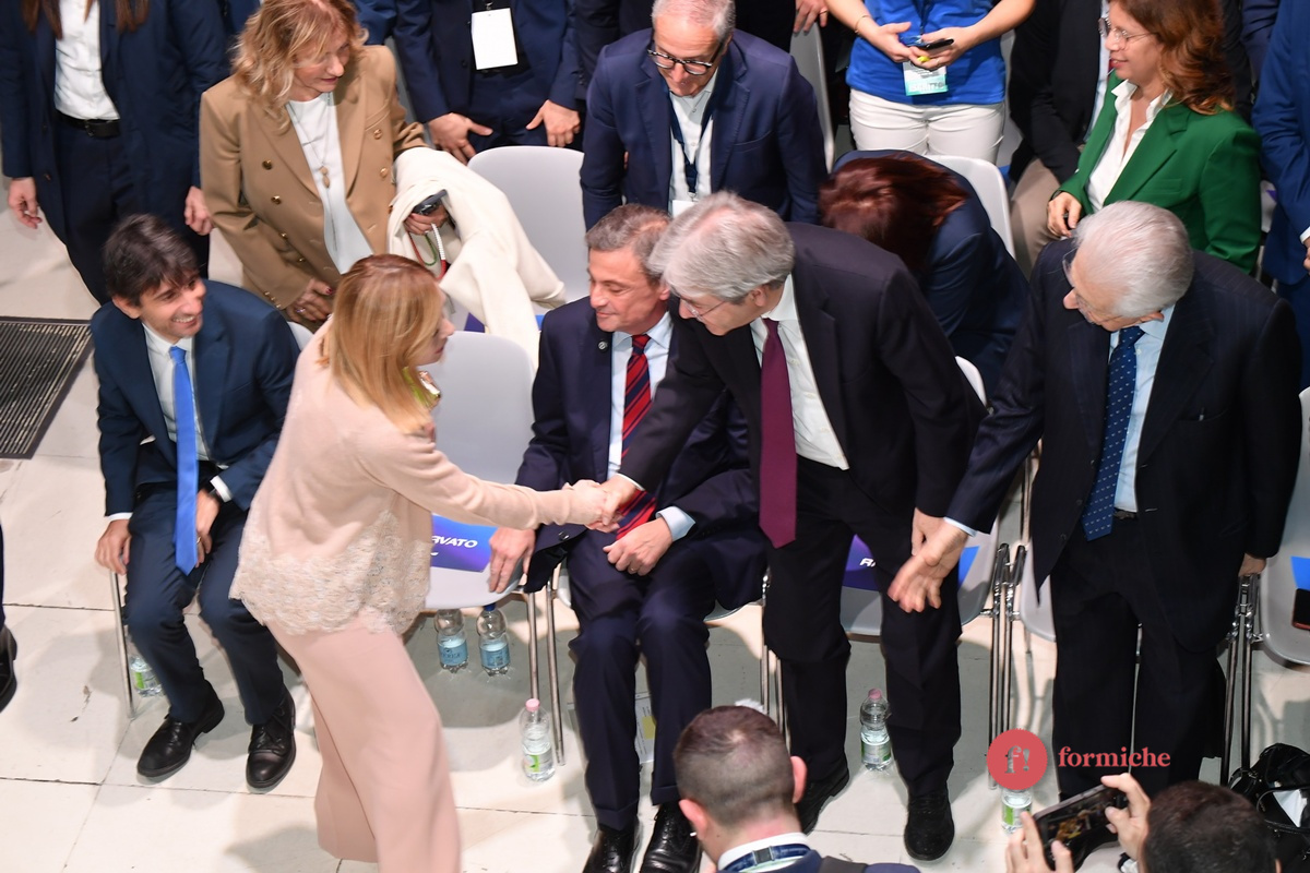 Meloni ha parlato anche delle reazioni alla sua intervista al Financial Times, sostenendo di essere stata travisata. “Sono molto stupita dall’interpretazione della mia intervista. È scandaloso, Meloni dichiara di stare con Trump contro l’Europa Ma non è quello che ho detto. Ho detto che sto sempre con l’Italia, che l’Italia sta in Europa e il suo ruolo deve essere anche quello di difendere l’unità dell’Occidente”, ha detto la premier dal palco del congresso di Azione. Ecco tutti gli scatti di Umberto Pizzi.