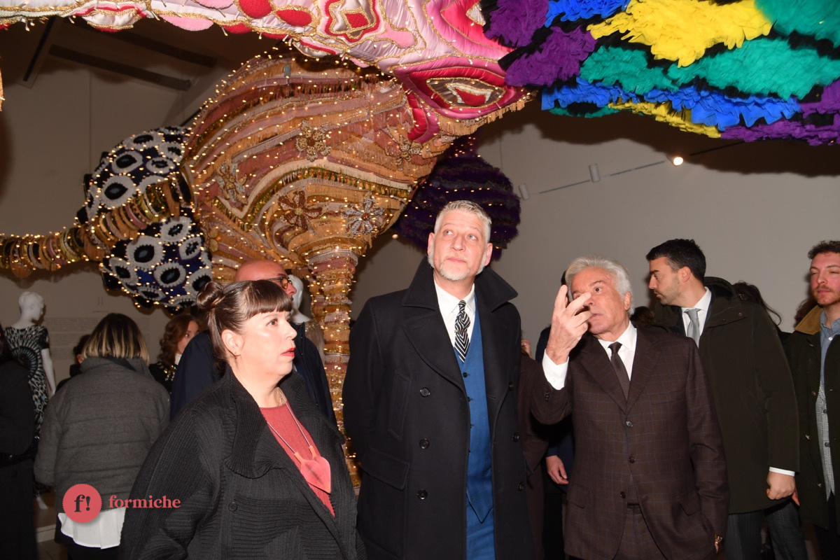 “C’è qualcosa di mistico – ha aggiunto Giuli – c’è qualcosa di altamente sociale perché sappiamo che a questa mostra hanno contribuito i saperi manuali di realtà come la Casa Circondariale Femminile di Roma, la Fondazione Severino, gli ospedali Gemelli e Bambin Gesù. Quindi c’è un’alta funzione sociale che si sposa con un dialogo tra una moda che non passerà mai di moda e un’arte straordinaria fondata su un sapere manuale che è un sapere del cuore, ovviamente”.